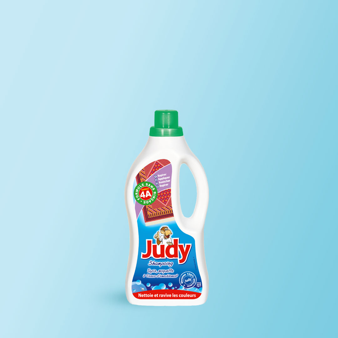 Leader sur le marché des produits ménagers multi-usages et sols et surfaces, Judy vous propose Judy Shampoing Tapis, moquette et tissus d'ameublement, un détergent linge spécialisé.