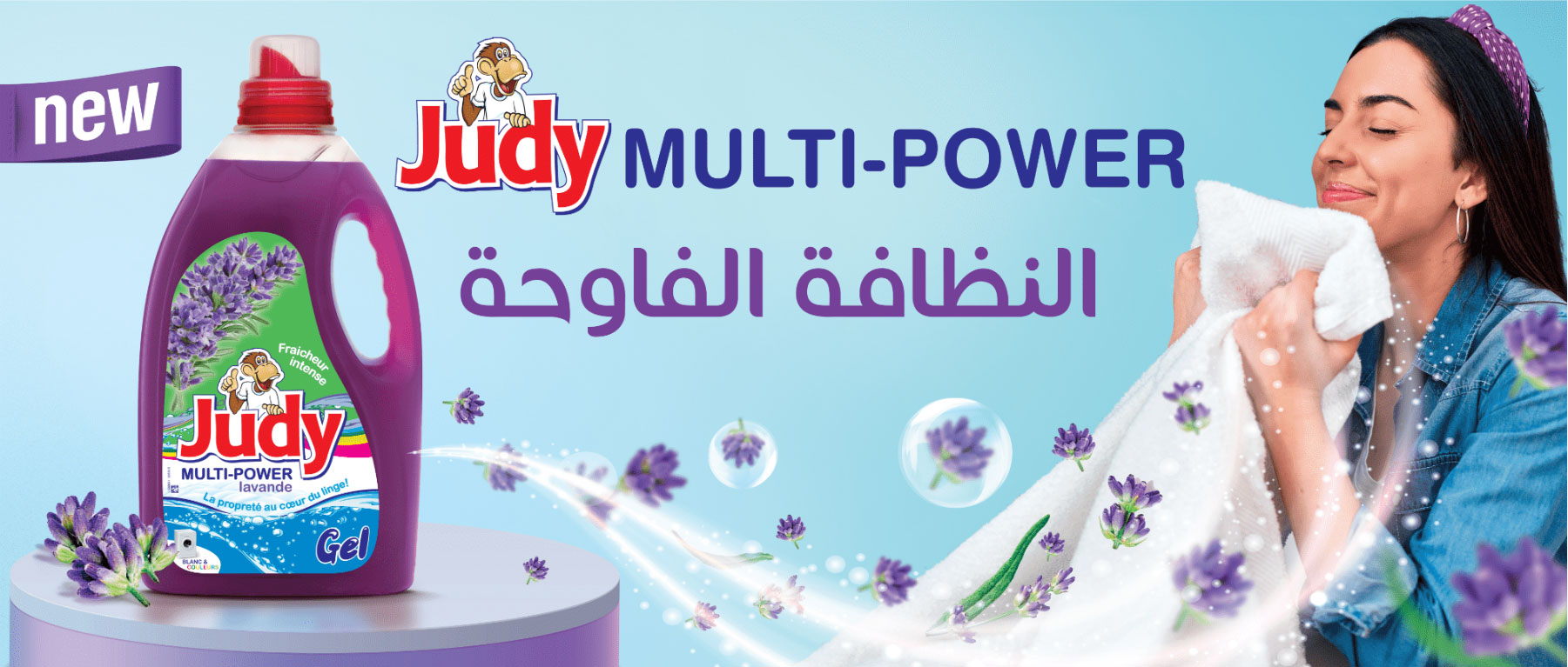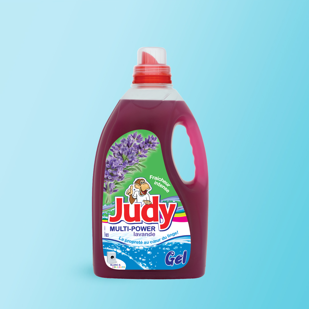 Disponible en trois parfums Lavande, Flower et Savon, Judy Multi-Power laisse une sensation de fraîcheur durable après chaque lavage. Il est proposé en deux formats pratiques : 2.6L et dosette de 120 ml.